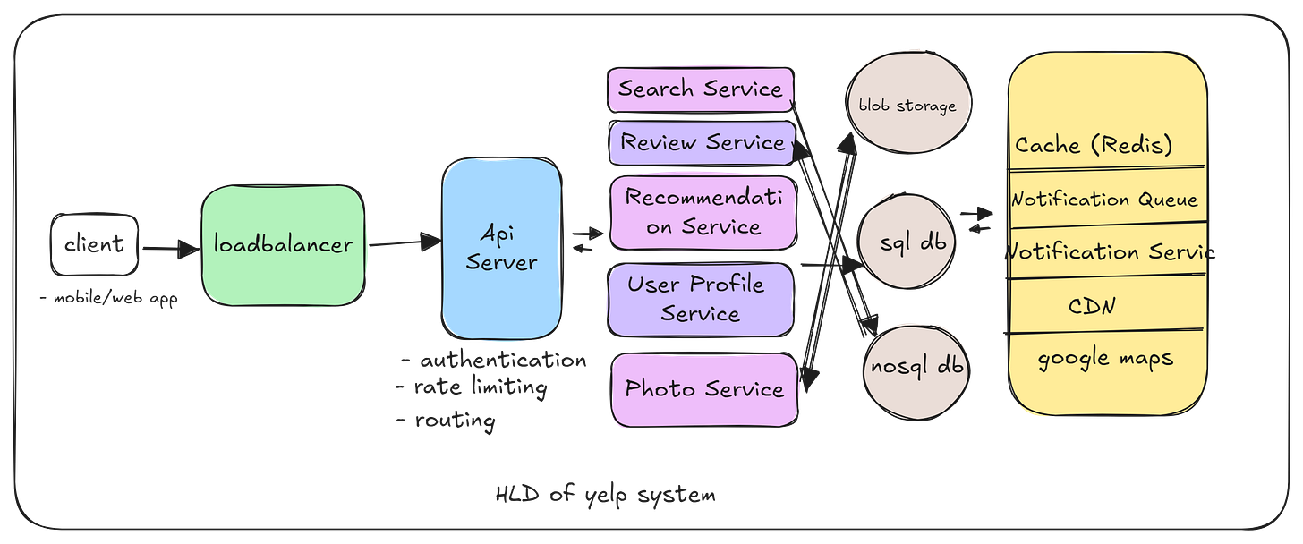 Designing a Yelp-like review system requires a robust, scalable, and efficient architecture to handle millions of users and billions of reviews, searches, and interactions.