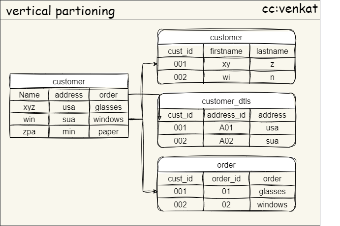 Imagine a large table storing user information (name, email, address, purchase history). Vertical partitioning could separate this data: