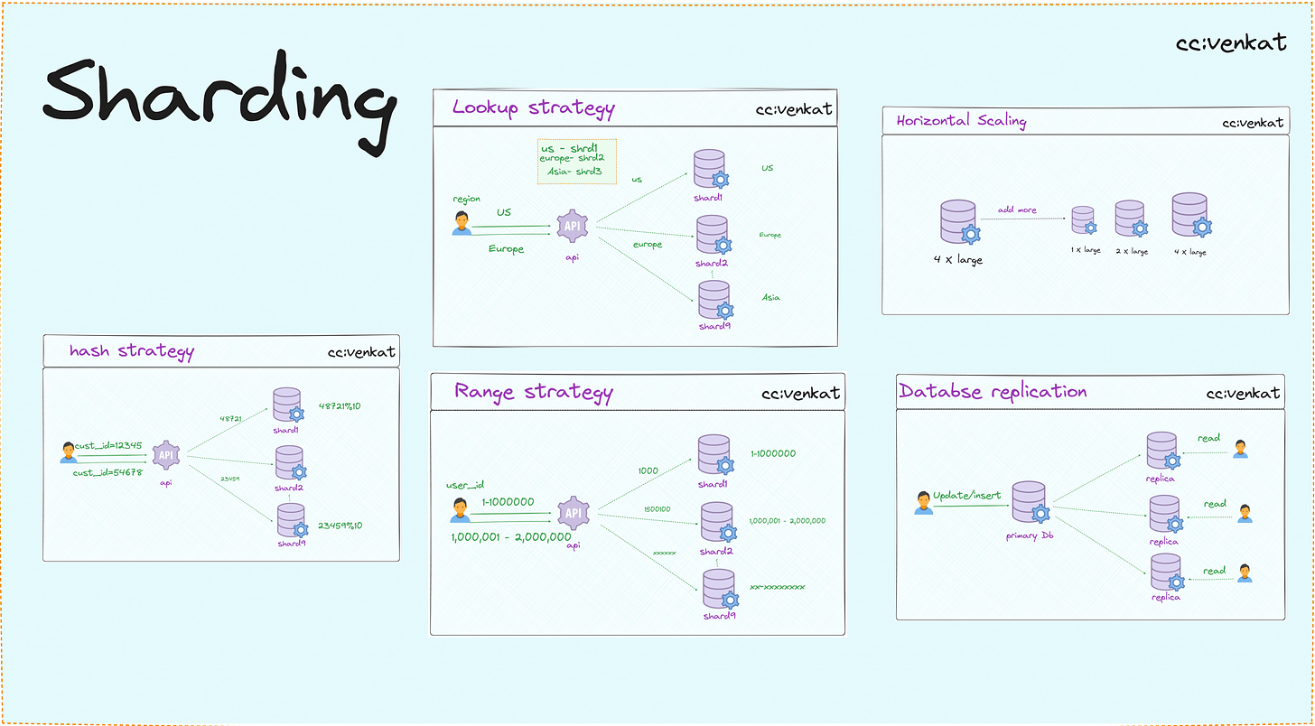 There are various approaches to sharding a database, each with its advantages and considerations: