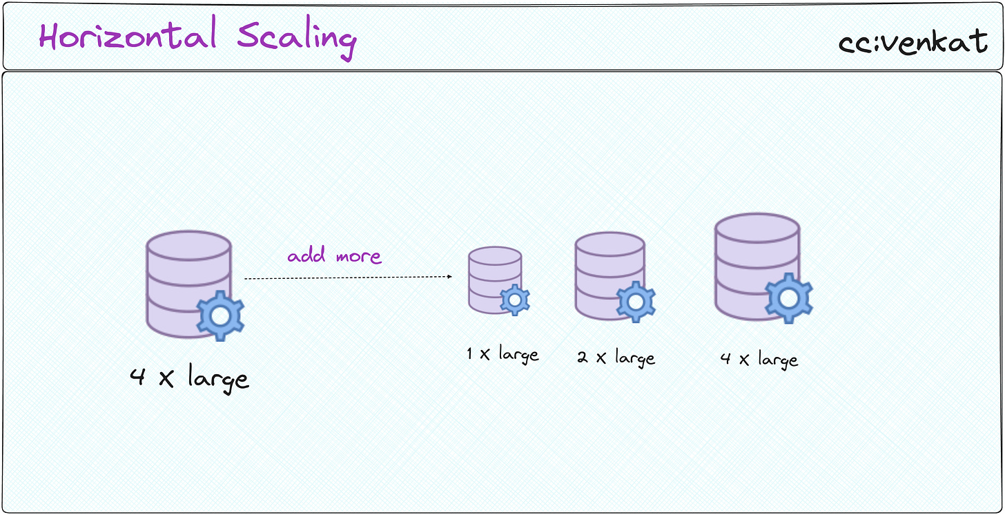 Sharding is an example of horizontal scaling, while vertical scaling is an example of just getting larger and larger machines to support the new workload.